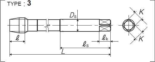 | 全長 | 螺紋部長 | 頸下長 | 柄部長 | 柄徑 | 四角部寬 | 四角部長 |