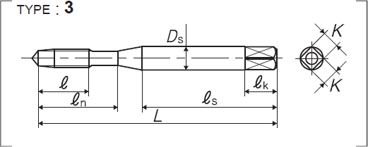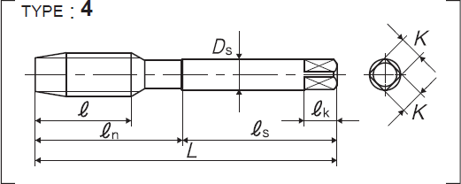| 全長 | 螺紋部長 | 頸下長 | 柄部長 | 柄徑 | 四角部寬 | 四角部長 |