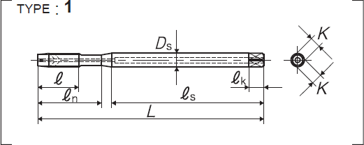 | 全長 | 螺紋部長 | 頸下長 | 柄部長 | 柄徑 | 四角部寬 | 四角部長 |