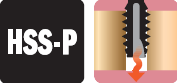 ■適合加工高碳鋼、合金鋼的鍛造物或調質材、模具材等,硬度35~45HRC的高硬度剛才通孔用的先端絲攻。
