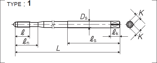 | 全長 | 螺紋部長 | 頸下長 | 柄部長 | 柄徑 | 四角部寬 | 四角部長 |