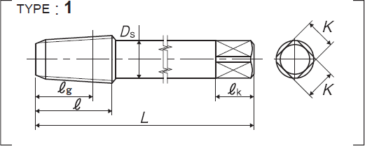 | 全長 | 螺紋部長 | 基準徑的位置 | 柄徑 | 四角部寬 | 四角部長 |