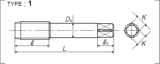 | 全長 | 螺紋部長 | 基準徑的位置 | 柄徑 | 四角部寬 | 四角部長 |