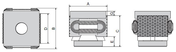 | 件號 | A | B | C | D | E | G | 內六角螺栓 DIN 912 | 夾持力 kN | 扭矩 Nm | 重量 (g) (*盎司) | 硬度 HRC | ||