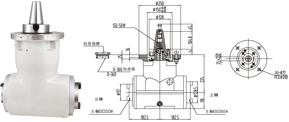 | BT50-BT50(T90) | BT50(最大200mm刀盤) | 1200RPM | 1:1 | 正轉-正轉 | 25KW | 手動 | 80kg |