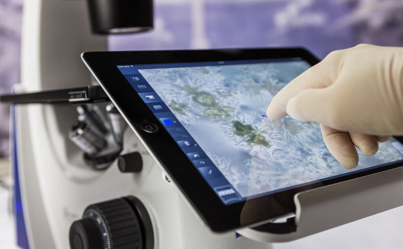 借助 Primovert HDcam 和 iPad 成像應用程序 Labscope,您可以與同事一起在無菌環境中獨立地觀察和討論細胞樣品。