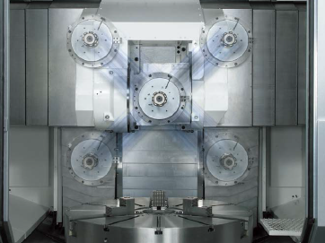 該復(fù)合加工機(jī)實(shí)現(xiàn)了包含高價(jià)專(zhuān)用機(jī)在內(nèi)的3種機(jī)型加工工序的集約。不但有效降低了設(shè)備成本,節(jié)省了安裝空間,還大幅縮短了生產(chǎn)周期。同時(shí),依靠5軸聯(lián)動(dòng)控制(B軸NC)和高精度C軸,實(shí)現(xiàn)高精度加工。