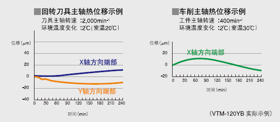 車削主軸轉矩是5,114/3.750N · m(30分/連續額定)(VTM-120YB/OSP-P200LA)。因為是齒輪主軸可以實現強力切削。