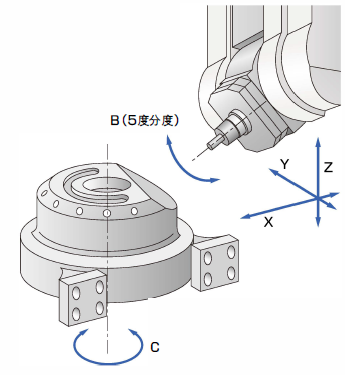 車削加工及豎、橫之外可以進行傾斜面(B軸5度分度)的加工。