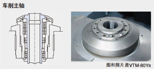 車削主軸是大直徑滾柱軸承的2點支撐可以高精度加工。