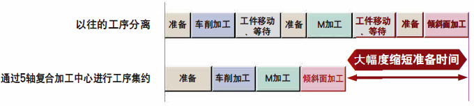 通過一次夾緊的多面加工實現了大幅度縮短準備時間和提高加工精度。