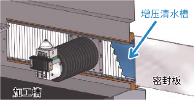 ● 利用增壓清水槽,防止加工碎屑附著在密封部分