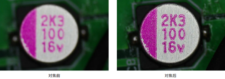 PCB板上有很多元件,并且高低不同,使用傳統的顯微鏡需要不斷找對位置手動對焦,而使用XHD-AF視頻顯微鏡可通過變倍尋找目標,然后快速定焦檢測。