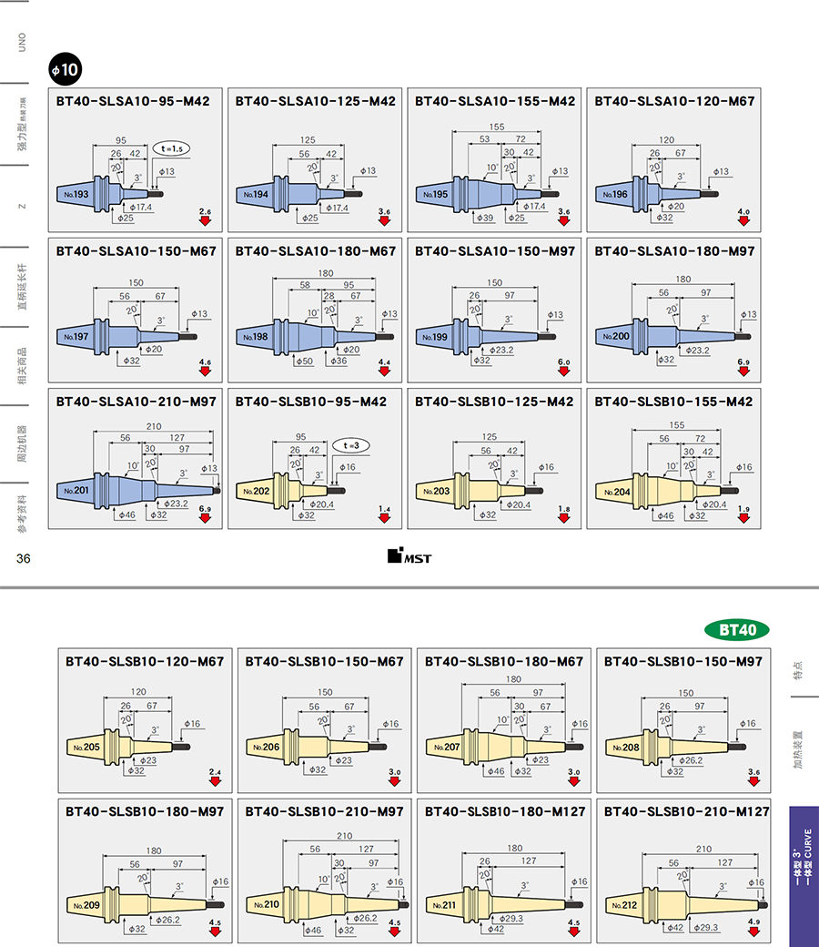 | BT40-SLSB10-210-M97 | 一體式熱裝刀柄 | BT40 | 10 | 3 | 210 | 97 | 1.8 | 加購詢價 |