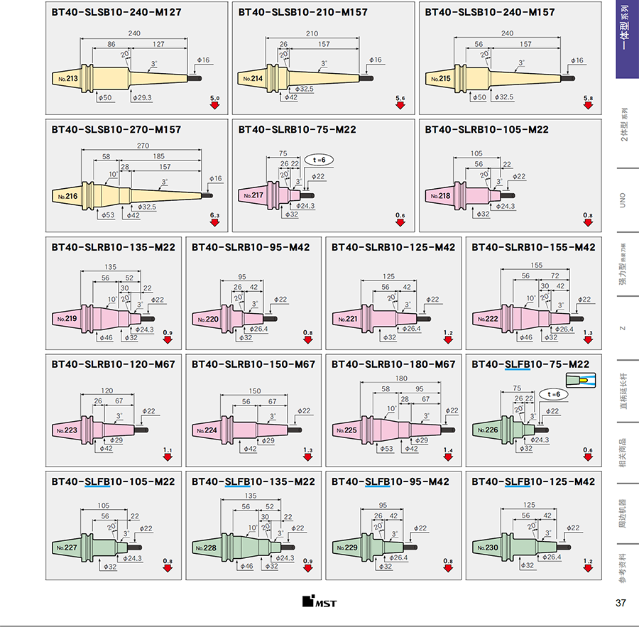 | BT40-SLRB10-135-M22 | 一體式熱裝刀柄 | BT40 | 10 | 6 | 135 | 22 | 1.7 | 加購詢價 |