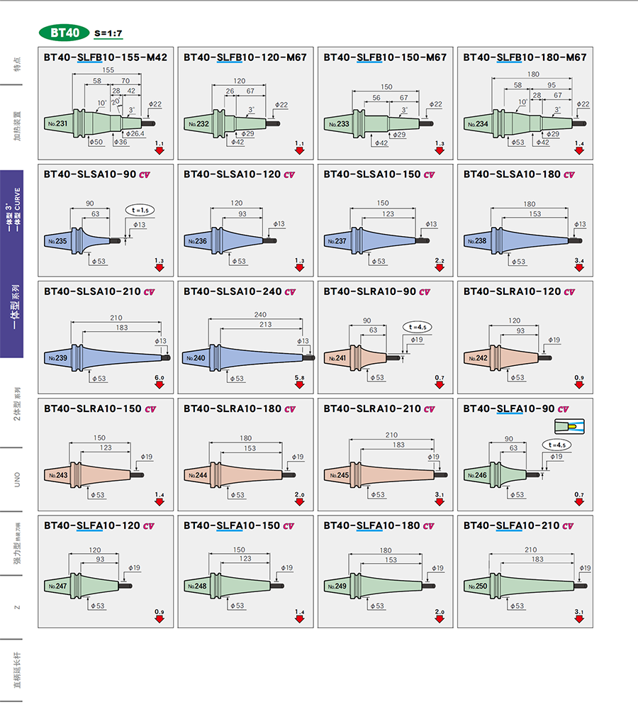 | BT40-SLSA10-240CV | 一體式熱裝刀柄 | BT40 | 10 | 1.5 | 240 | 213 | 2 | 加購詢價 |