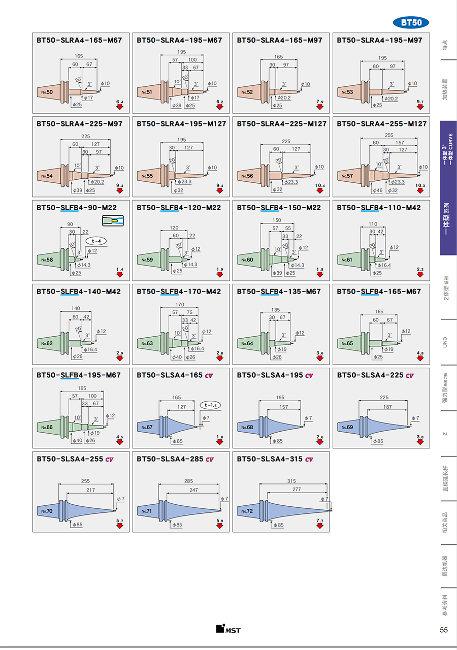 | BT50-SLSA4-165-M67 | 一體式熱裝刀柄 | BT50 | 4 | 1.5 | 165 | 67 | 3.7 | 加購詢價 |