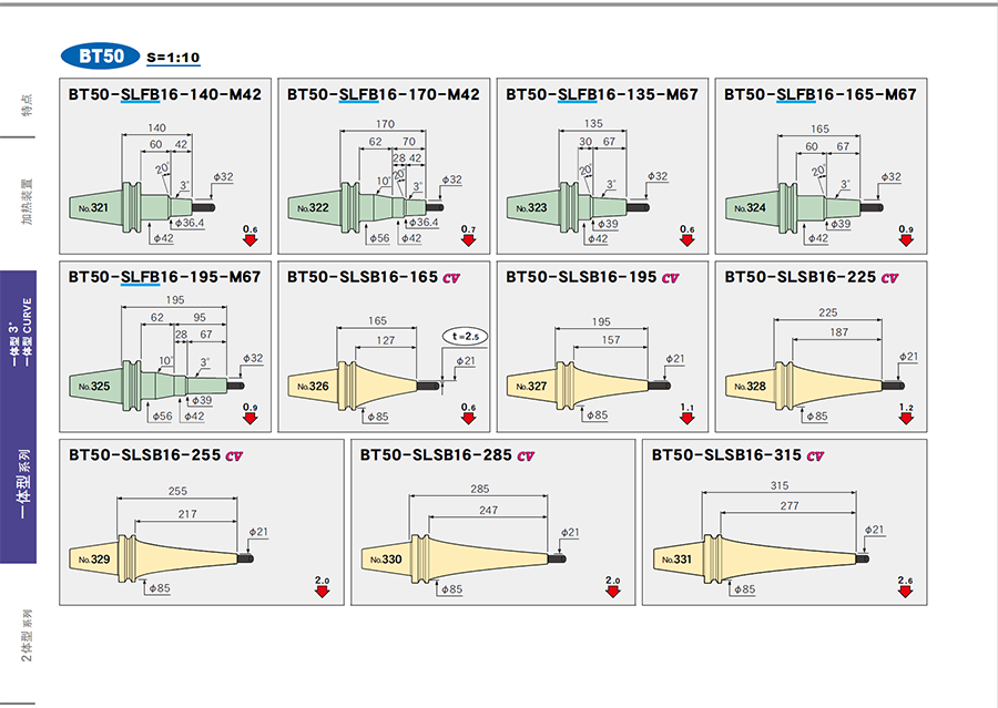 | BT50-SLSB16-315CV | 一體式熱裝刀柄 | BT50 | 16 | 2.5 | 315 | 277 | 8.6 | 加購詢價 |
