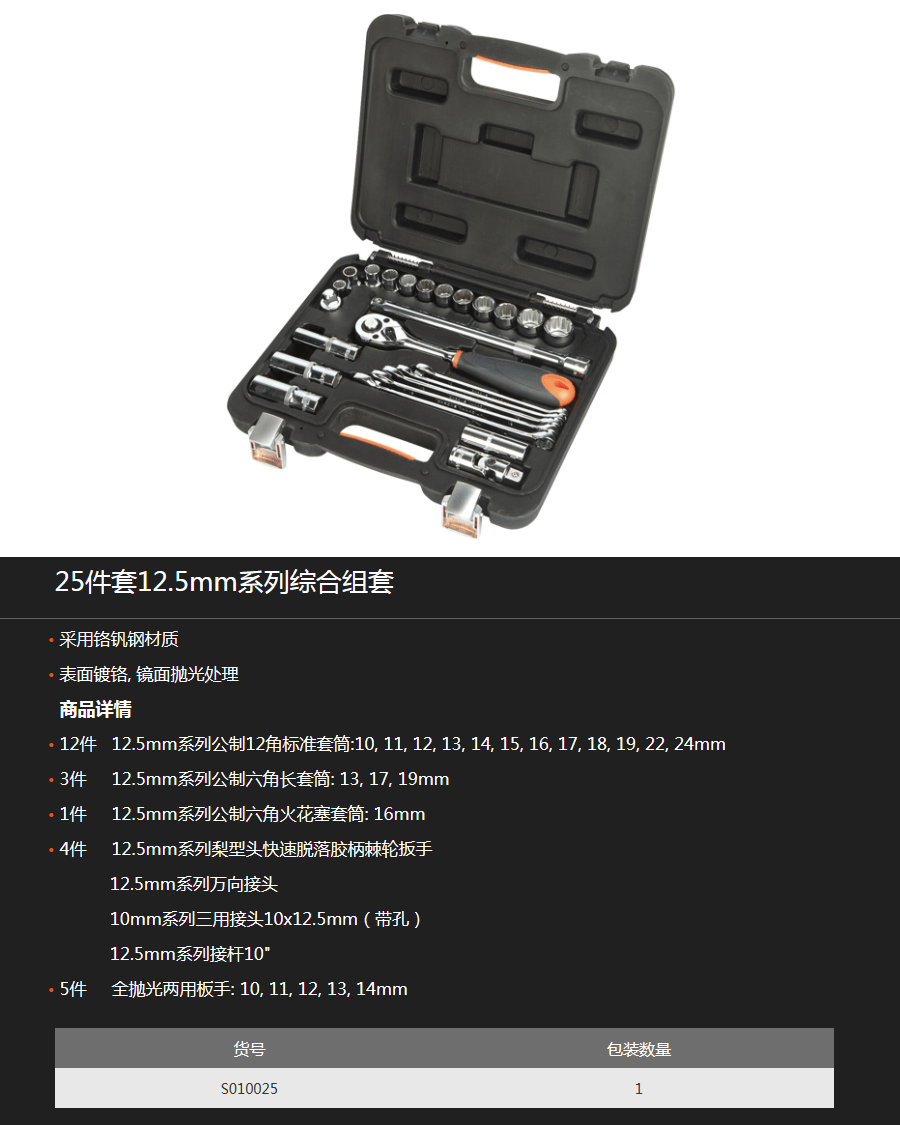 思誠資源為您提供:SHEFFIELD鋼盾 S010025 25件套12.5mm系列綜合組套套裝的采購報價、SHEFFIELD(鋼盾)S010025型號參數、規格圖片、PDF畫冊等資料,如您想了解更多關于SHEFFIELD(鋼盾)正品品牌的其他機工工具資料與產品貨期庫存、行情價格,就在思誠資源MRO商城。