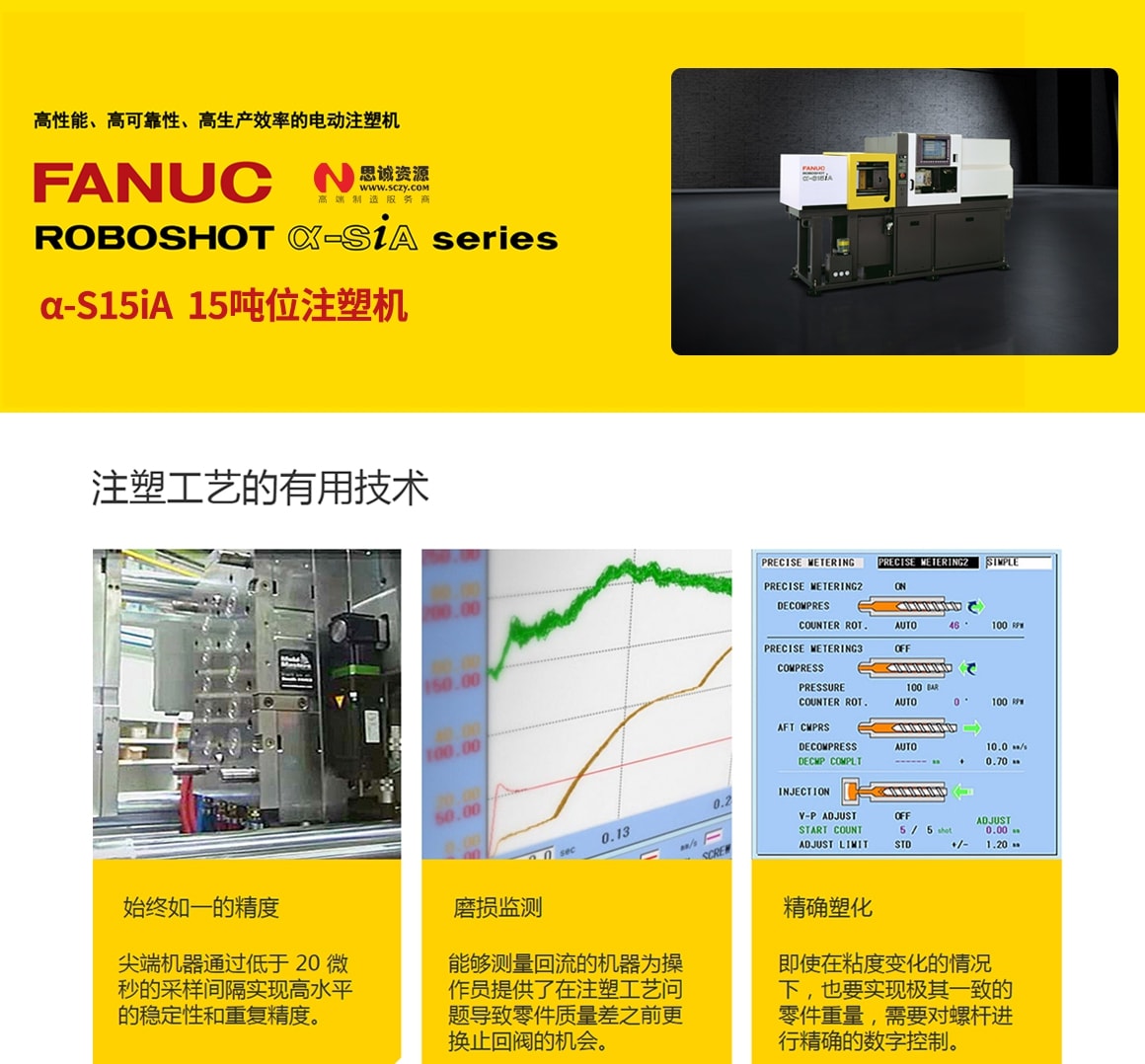 思誠資源為您提供:FANUC發那科 α-S15iA 15噸小型電動注塑機的采購報價、FANUC(發那科)α-S15iA型號參數、規格圖片、PDF畫冊等資料,如您想了解更多關于FANUC(發那科)正品品牌的其他注塑機資料與產品貨期庫存、行情價格,就在思誠資源MRO商城。