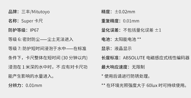 思誠資源為您提供:Mitutoyo三豐 500系列 Super電子數顯IP67防水卡尺的采購報價、Mitutoyo(三豐)500系列型號參數、規格圖片、PDF畫冊等資料,如您想了解更多關于Mitutoyo(三豐)正品品牌的其他卡尺資料與產品貨期庫存、行情價格,就在思誠資源MRO商城。