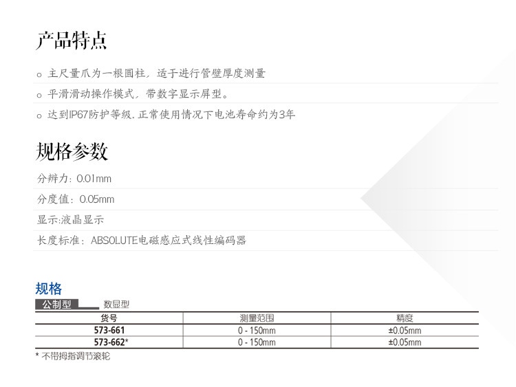 思誠資源為您提供:Mitutoyo三豐 573系列 數顯管壁厚度卡尺的采購報價、Mitutoyo(三豐)573系列型號參數、規格圖片、PDF畫冊等資料,如您想了解更多關于Mitutoyo(三豐)正品品牌的其他卡尺資料與產品貨期庫存、行情價格,就在思誠資源MRO商城。