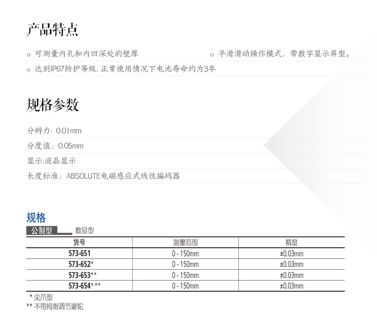 | 573-651-20(0-150MM) | 0.03 | 其他 | 1200 | 0-150 | 0.01 | 加購詢價(jià) |