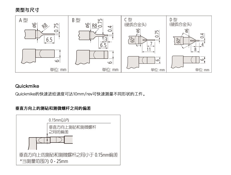 | 422-230-30(0-25MM) | 0.003 | 1 | 硬質合金測量面 | 0-25 | 1000 | 加購詢價 |