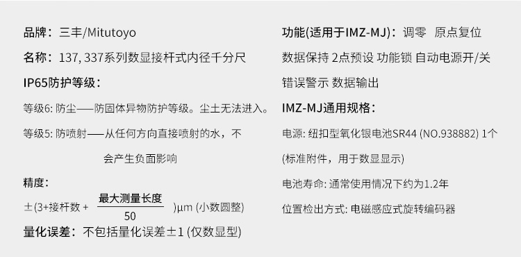 思誠資源為您提供:Mitutoyo三豐 137系列 接長桿型內徑千分尺的采購報價、Mitutoyo(三豐)137系列型號參數、規格圖片、PDF畫冊等資料,如您想了解更多關于Mitutoyo(三豐)正品品牌的其他千分尺資料與產品貨期庫存、行情價格,就在思誠資源MRO商城。