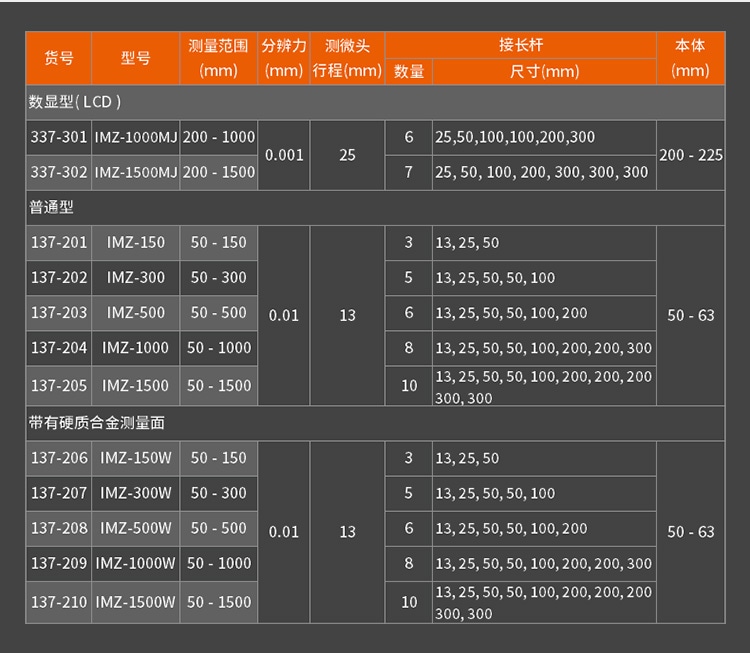 | 137-203/50-500mm/0.01mm/13mm | 其他 | 10 | 13mm | 50-500 | 1150 | 加購詢價 |