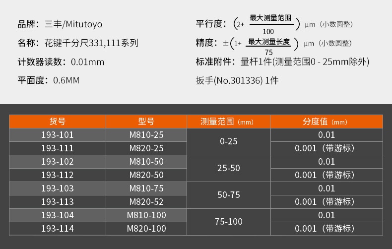 | 193-114/75-100mm | 0.003 | 硬質合金 | 0.001 | 75-100 | 加購詢價 |