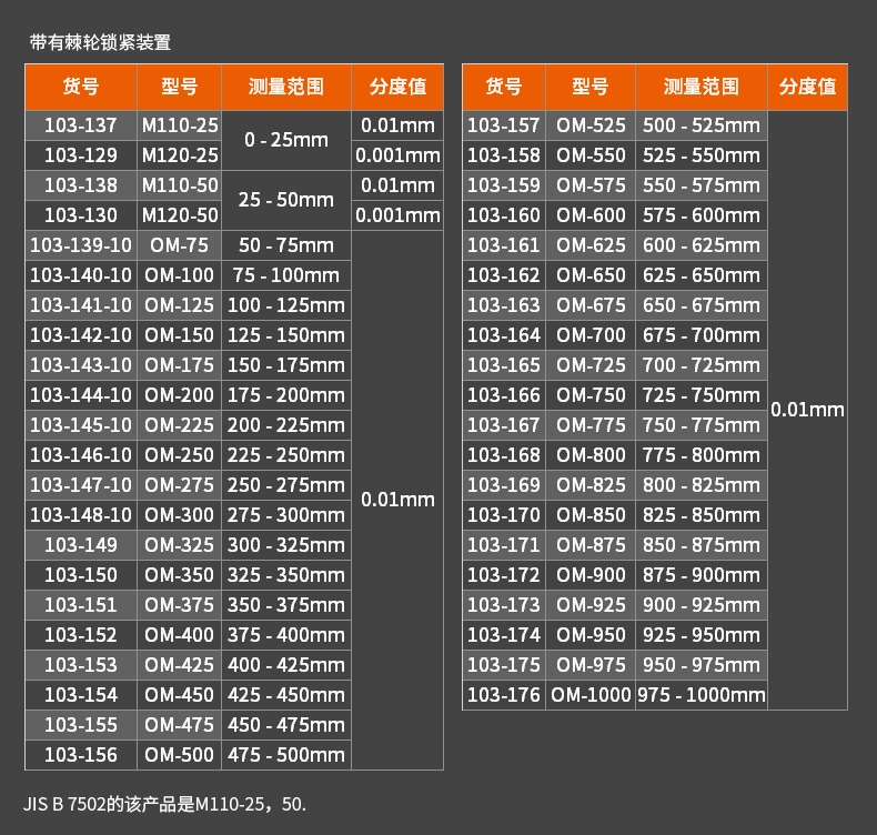 | 103-138/25-50mm/0.01mm | 0.002 | 25-50 | 0.01 | 加購詢價 |