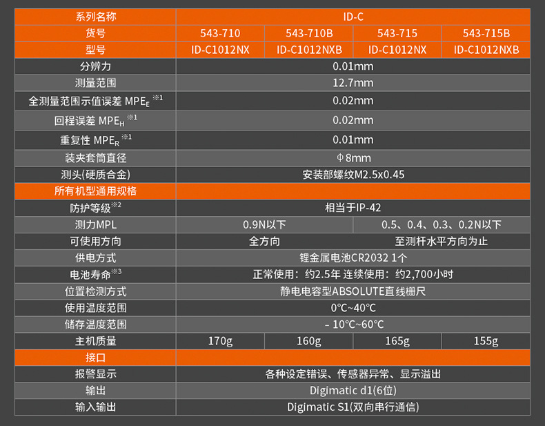 | 543-700/0-12.7mm/0.001mm/帶耳后蓋 | 0.003 | 59 | 0-12.7 | 0.001/0.0005/0.01切換 | 加購詢價 |