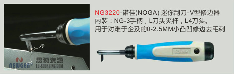 思誠資源為您提供:NG3220 諾佳(NOGA) 迷你刮刀-V型修邊器的采購報價、NOGA(諾佳)NG3220型號參數、規格圖片、PDF畫冊等資料,如您想了解更多關于NOGA(諾佳)正品品牌的其他修邊器資料與產品貨期庫存、行情價格,就在思誠資源MRO商城。