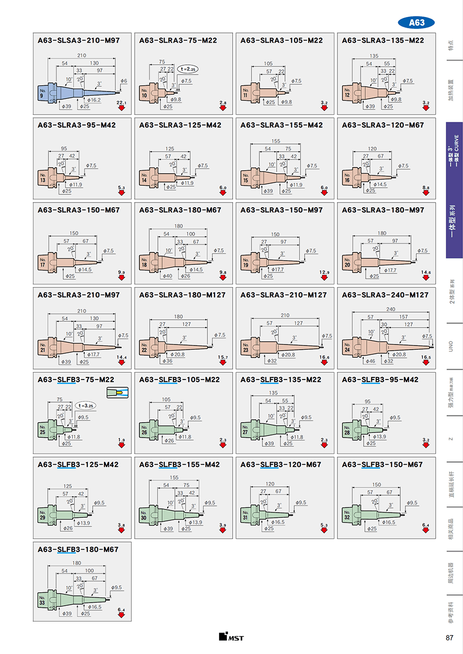 | A63-SLRA3-75-M22 | 一體式熱裝刀柄 | A63 | 3 | 2.25 | 75 | 22 | 0.7 | 加購詢價 |