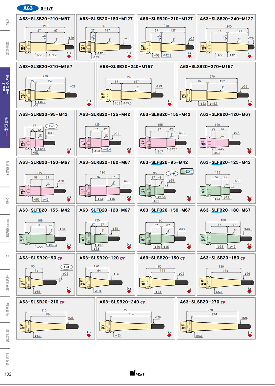 | A63-SLSB20-210CV | 一體式熱裝刀柄 | A63 | 20 | 3 | 210 | 184 | 2.4 | 加購詢價 |