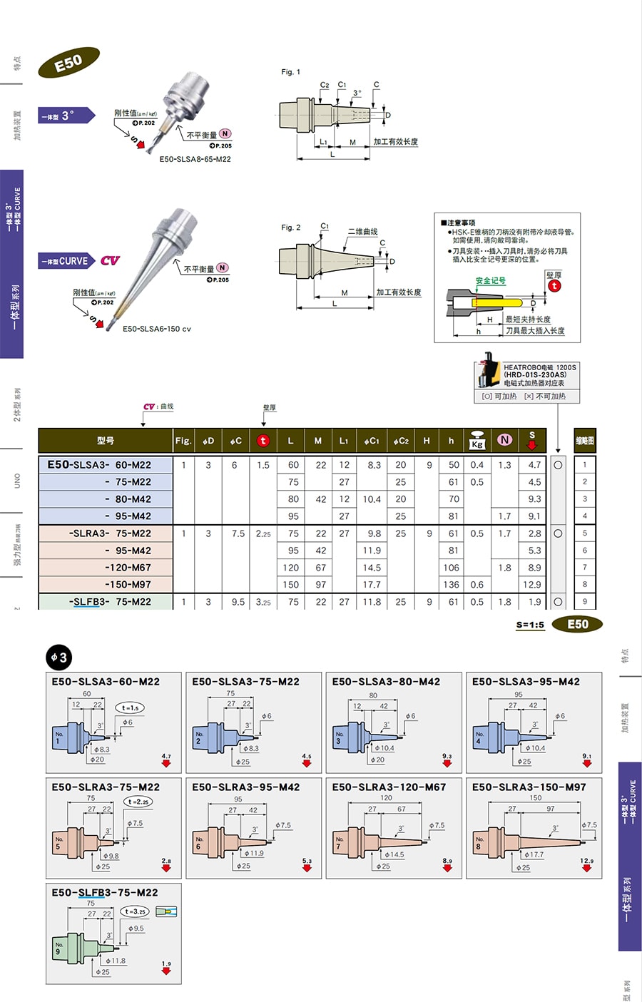 | E50-SLSA3-95-M42 | 一體式熱裝刀柄 | E50 | 3 | 1.5 | 95 | 42 | 0.5 | 加購詢價 |