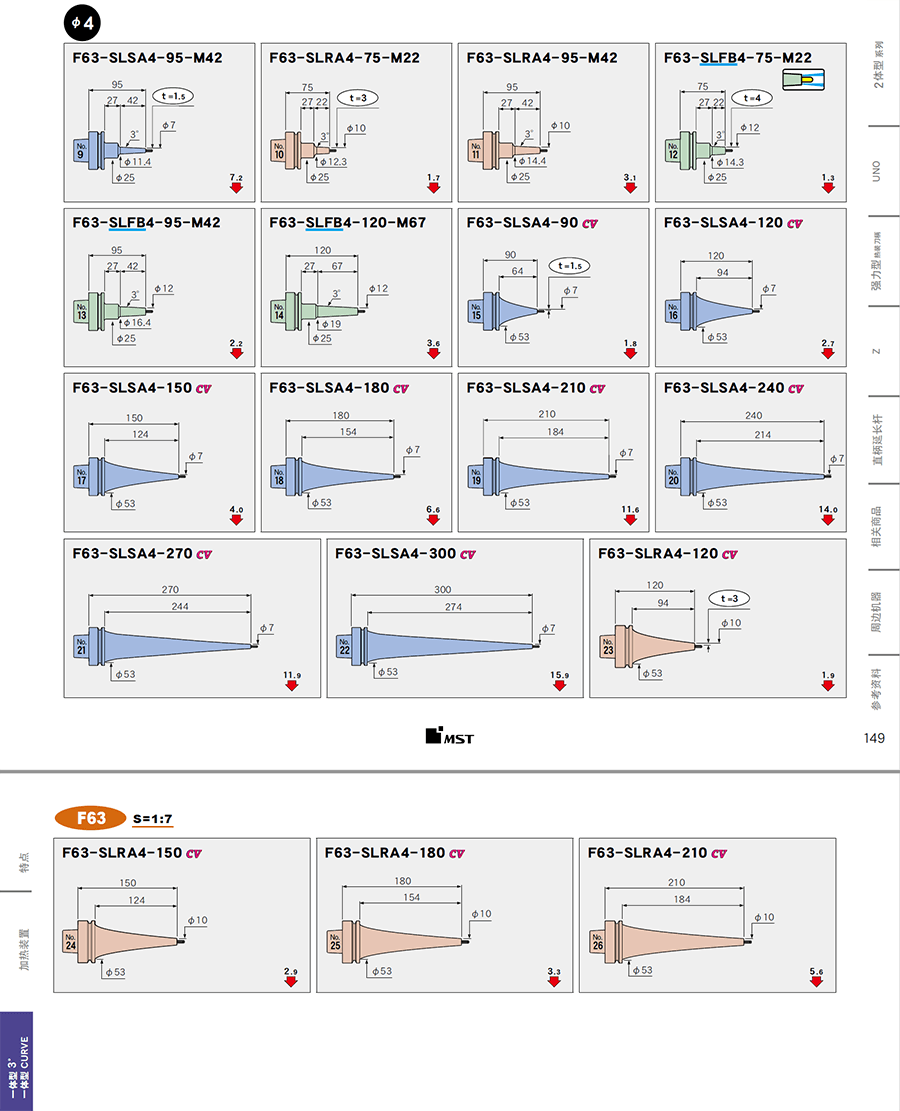 | F63-SLSA4-210CV | 一體式熱裝刀柄 | F63 | 4 | 1.5 | 210 | 184 | 1.3 | 加購詢價 |