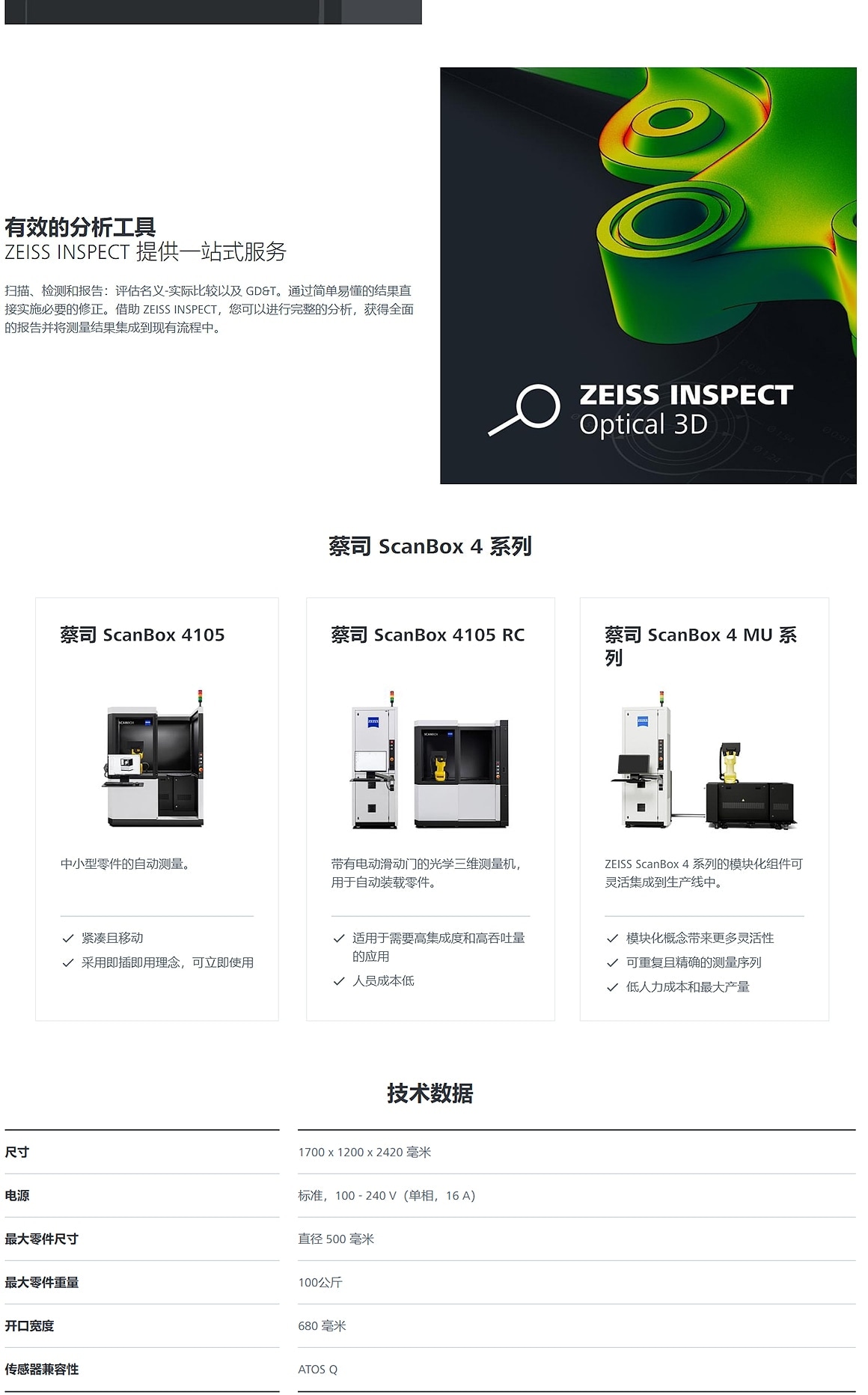 思誠資源為您提供:ZEISS蔡司 ScanBox4105 光學(xué)3D移動式獨立測量掃描儀的采購報價、ZEISS(蔡司)ScanBox 4105型號參數(shù)、規(guī)格圖片、PDF畫冊等資料,如您想了解更多關(guān)于ZEISS(蔡司)正品品牌的其他三維掃描儀資料與產(chǎn)品貨期庫存、行情價格,就在思誠資源MRO商城。
