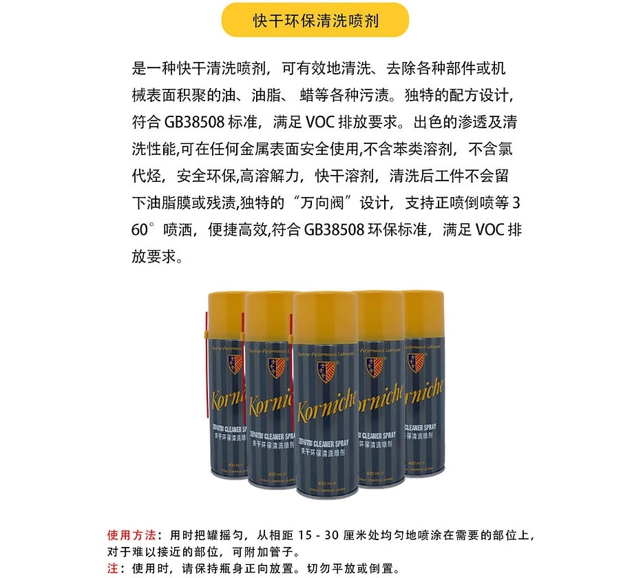 思誠資源為您提供:KORNICHE比爾 快干環保清洗噴劑 400mle的采購報價、比爾(KORNICHE)Zerotri Cleaner Spray型號參數、規格圖片、PDF畫冊等資料,如您想了解更多關于比爾(KORNICHE)正品品牌的其他五金噴劑資料與產品貨期庫存、行情價格,就在思誠資源MRO商城。