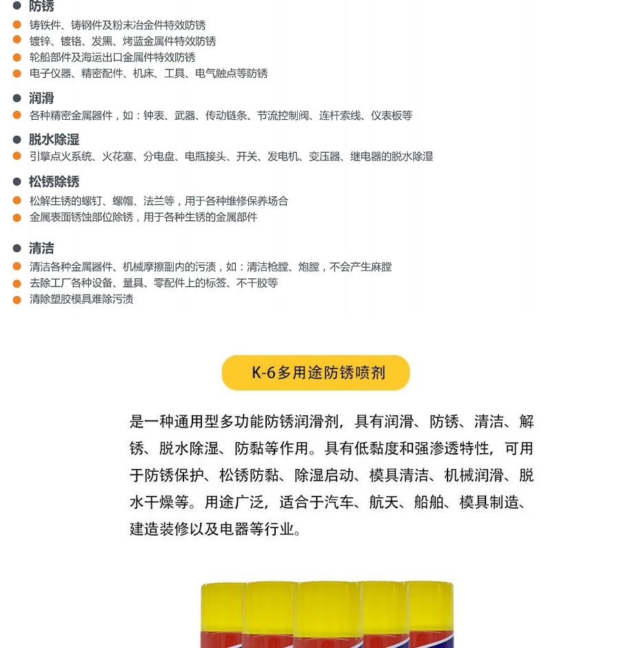 思誠資源為您提供:KORNICHE比爾 K-6多用途防銹噴劑 400mle的采購報價、比爾(KORNICHE)K-6型號參數、規格圖片、PDF畫冊等資料,如您想了解更多關于比爾(KORNICHE)正品品牌的其他五金噴劑資料與產品貨期庫存、行情價格,就在思誠資源MRO商城。