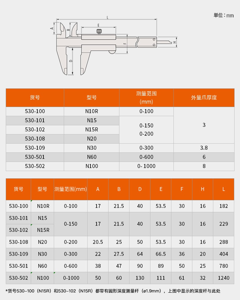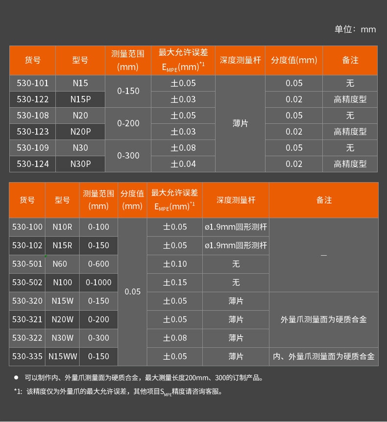| 530-104/0-150mm/0.05mm/±0.05mm薄片/公英制 | ±0.07 | 硬質合金 | 0-150 | 600 | 0.05 | 加購詢價 |