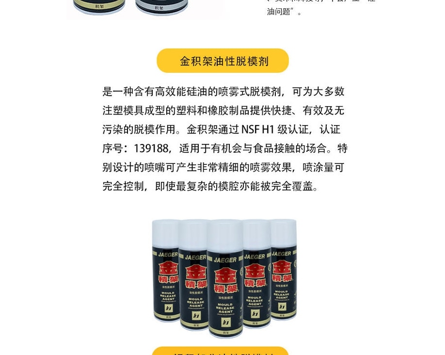 思誠資源為您提供:JAEGER積架 高效硅油噴霧金銀油性脫模劑 450ml的采購報價、JAEGER(積架)MOULD RELEASE AGENT型號參數、規格圖片、PDF畫冊等資料,如您想了解更多關于JAEGER(積架)正品品牌的其他五金噴劑資料與產品貨期庫存、行情價格,就在思誠資源MRO商城。