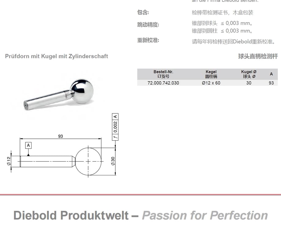 Diebold戴博 7/24錐度主軸跳動(dòng)檢棒 大錐度