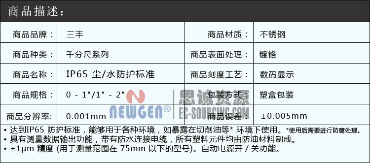 思誠資源為您提供:三豐Mitutoyo防水數顯千分尺 293-240/340 293-241/341的采購報價、Mitutoyo(三豐)293-240|293-241|293-242型號參數、規格圖片、PDF畫冊等資料,如您想了解更多關于Mitutoyo(三豐)正品品牌的其他千分尺資料與產品貨期庫存、行情價格,就在思誠資源MRO商城。