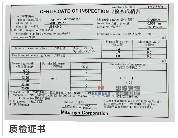 品牌:Mitutoyo(三豐)