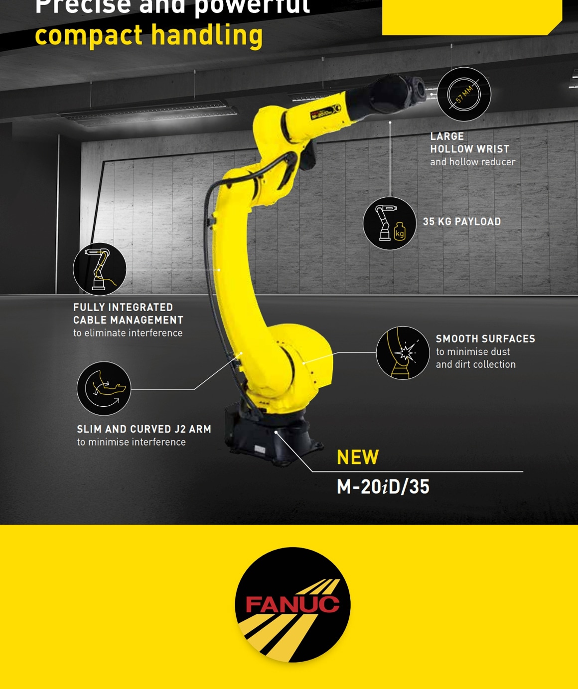 思誠資源為您提供:FANUC發那科 M-20iD/35公斤 6軸高性能機械臂的采購報價、FANUC(發那科)M-20iD/35型號參數、規格圖片、PDF畫冊等資料,如您想了解更多關于FANUC(發那科)正品品牌的其他機器人資料與產品貨期庫存、行情價格,就在思誠資源MRO商城。