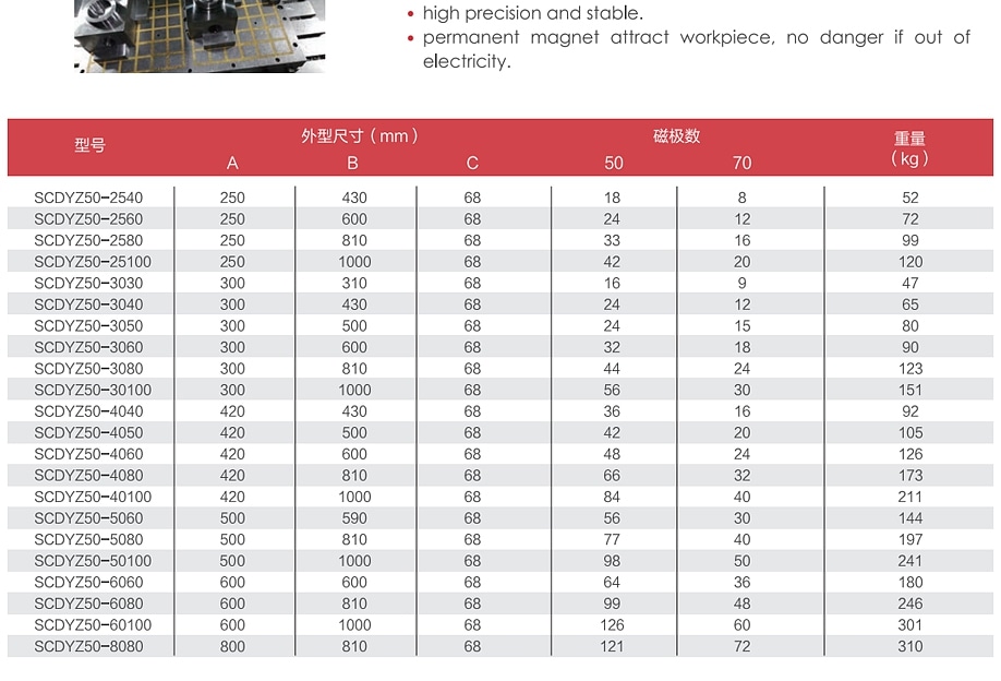 思誠資源為您提供:SCZY思誠資源 SCDYZ50 密集型電控永磁吸盤的采購報價、SCZY(思誠資源)SCDYZ50型號參數(shù)、規(guī)格圖片、PDF畫冊等資料,如您想了解更多關(guān)于SCZY(思誠資源)正品品牌的其他電磁吸盤資料與產(chǎn)品貨期庫存、行情價格,就在思誠資源MRO商城。