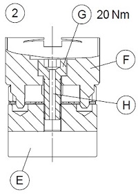 以20Nm力鎖緊螺栓(G)。