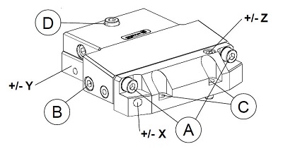 4、旋轉調節螺絲(Y)移動工件至Y軸向需要的位置(ca.+/-0.3°), 定位后,擰緊緊固螺栓(D)。用20Nm的扭力擰緊緊固螺栓(B)。